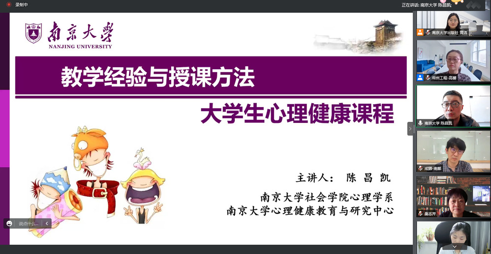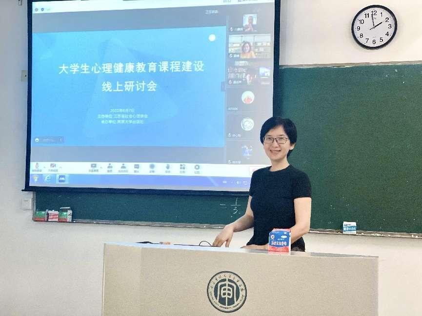 會上,幾位自不同高校的老師根據學生的心理發展任務以及既往教學過程中的經驗感受,并就如何激發學生學習興趣、活躍課堂氛圍、把握教學節奏等問題,在教學目标、教學重點和難點、教學方法和手段進行了分享。南京大學陳昌凱老師從學生喜歡的通俗知識出發,放棄循序誘導的套路,針對當下課程的碎片化知識,使用時髦網絡語言創造愉快的學習場,呈現多元立體的《大學生心理健康課程教學經驗與授課方法》。蘇州大學的王平老師分享了《大學生心理健康課程設計與組織實施》,課前明确課程大綱中教學思路、教學重點和難點,促進老師們對課程形成清晰的認知和理解,不斷設計、打磨、更新課程,實現理論和實踐的最優化嵌套。 南京航空航天大學的陳瑜老師從團輔工作的角度介紹了《團體輔導技術在大學生心理健康課程教學中的運用》,有效提升學生的自信心和學習動力。會後,來自全省不同高校的心理課程老師在線上進行了提問和解答。