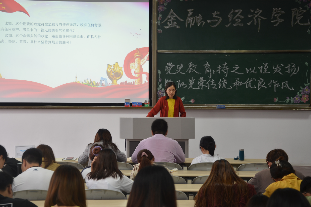 2021年6月2日金融與經濟學院在C中501開展了黨史教育“持之以恒地發揚黨的光榮傳統和優良作風”主題講座。該講座由黨員老師孫紅靜主講,金融與經濟學院黨史學習教育宣講團成員、全體學生黨員全部參加。