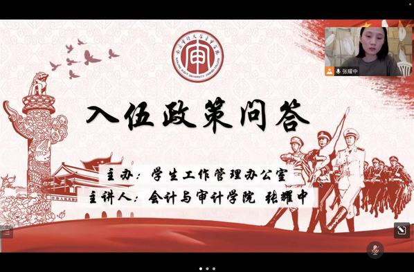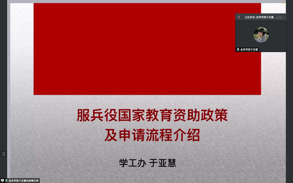 為提高應征入伍學生對于國家資助政策和申請流程的知曉度,推進大學生應征入伍工作,6月27日下午學生資助管理中心開展了服兵役國家資助政策線上宣講,今年秋季入伍的學生參加了此次宣講。