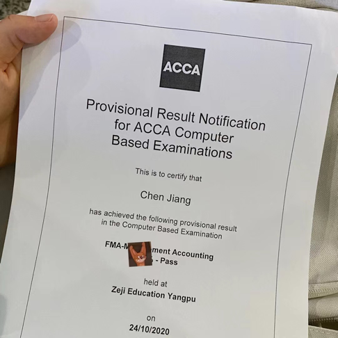 在漫漫考證路上,她通過了CIMA證書的BA3考試,完成了ACCA的F1、F2、F3、F5、F7階段!