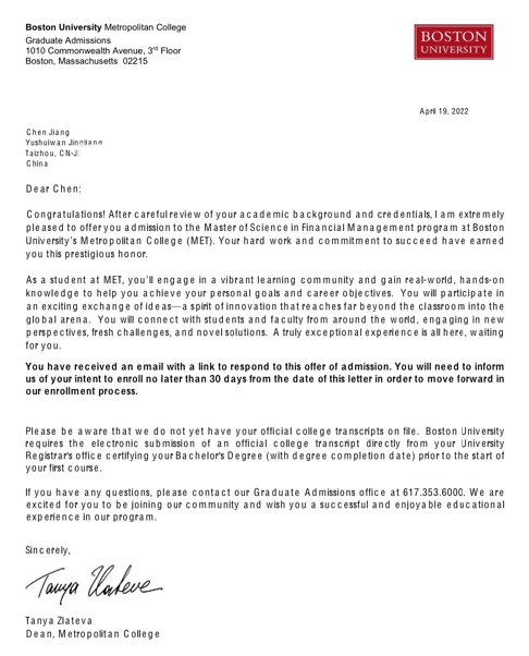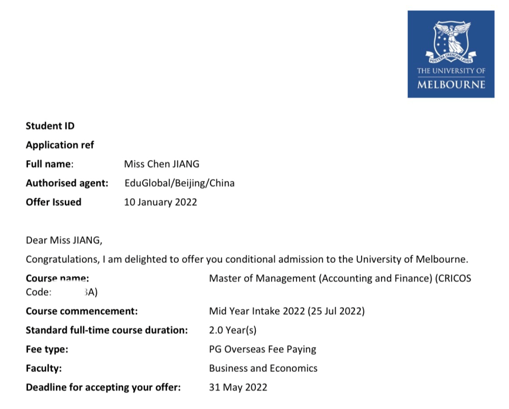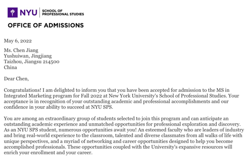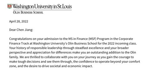 四年來,堅定的目标讓她的前路不迷茫,她把更多時間放到磨砺自己身上,最終收獲了來自美國約翰霍普金斯大學、聖路易斯華盛頓大學、波士頓大學、UIUC、澳洲墨爾本大學、悉尼大學、英國諾丁漢大學的offer。