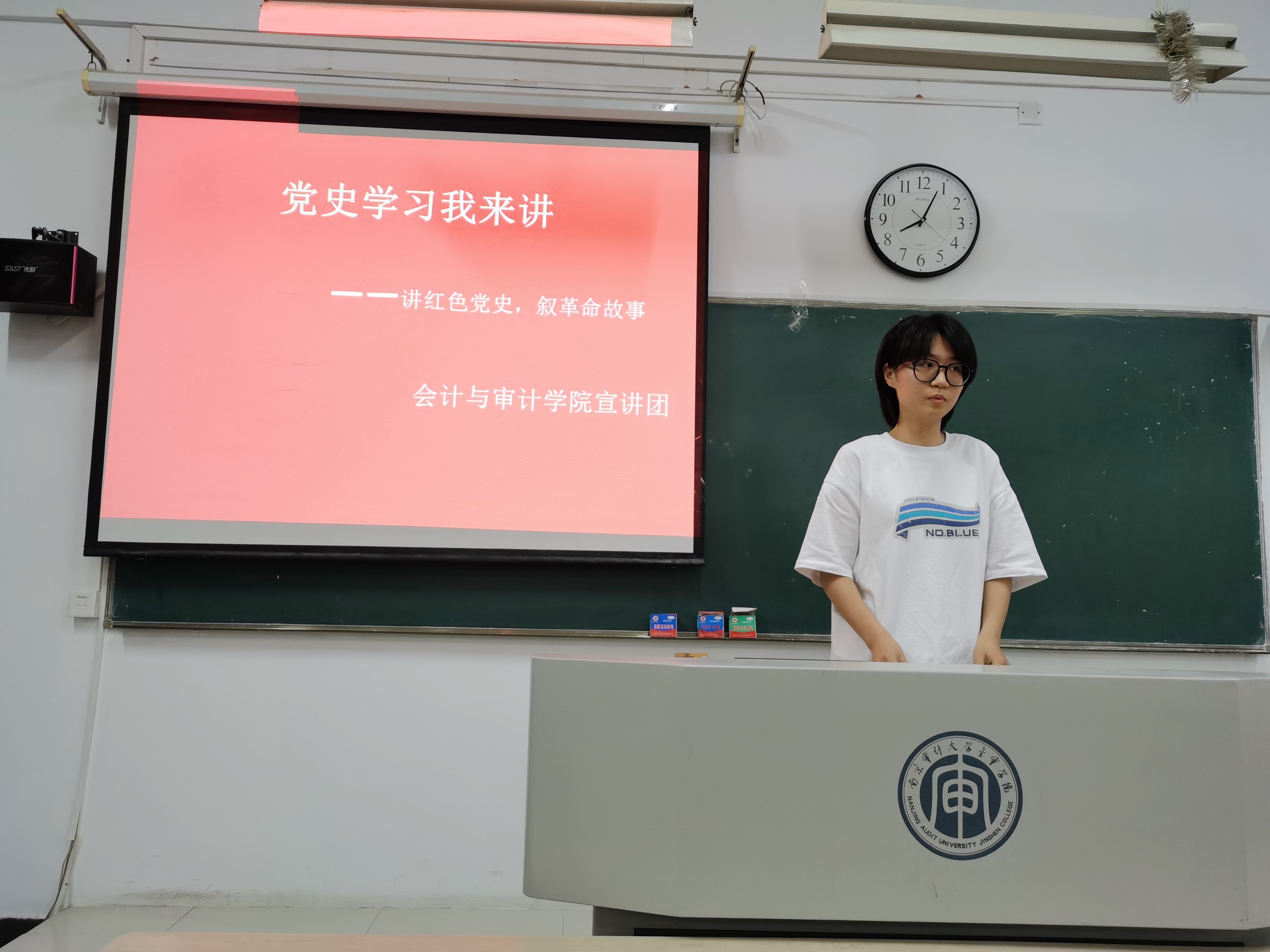 述往思來,向史而新。為宣揚紅色黨史學習教育,發揚紅色傳統,傳承紅色基因,202153118時,金年会會計與審計學院于B502教室開展了“黨史學習我來講——講紅色黨史,叙革命故事”主題演講培訓活動。本次黨史宣講團成員共22名同學參與了培訓會議,由會計與審計學院黨總支書記莊懷軍、會計與審計學院宣講團指導老師薛玲豔和會計與審計學院學生第二黨支部書記胥成鑫擔任本次主題演講培訓活動的指導老師。